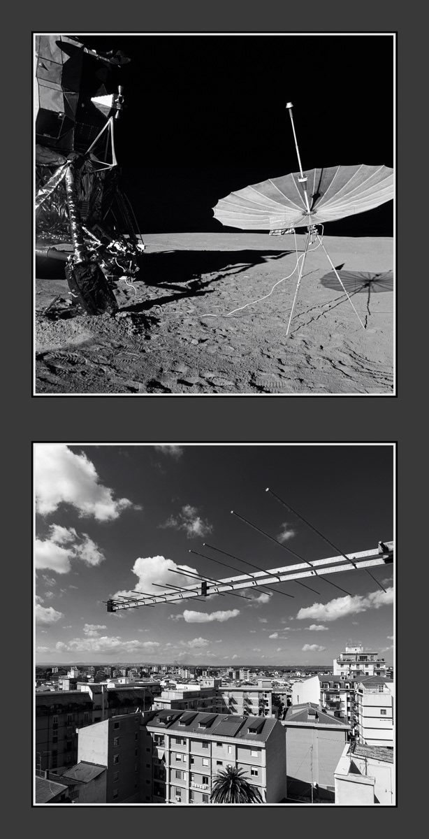 Due architetture del dialogo. Sulla Luna, gli apparati che permettono di parlare ai “Terrestri”; sulla Terra, le antenne che collegano uomini e comunità. È il desiderio umano di vincere l'isolamento ed il silenzio cosmico: comunicare, sempre, a tutti i costi.
