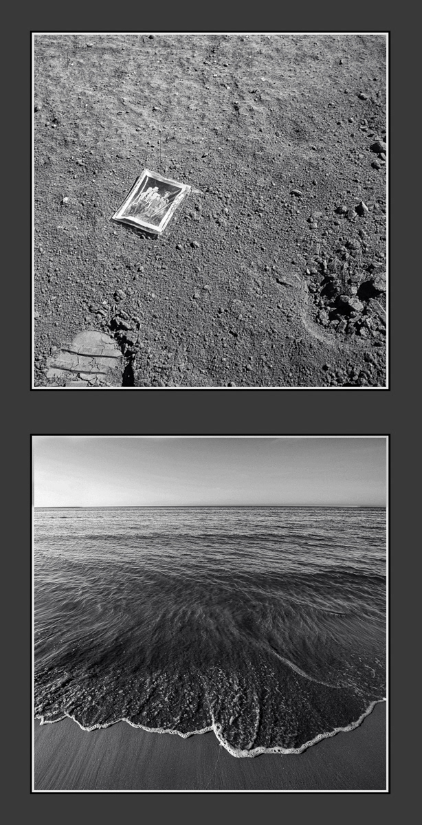 A still, motionless, immortal image on the lunar surface, against the waves that erase and transform everything. Permanence and oblivion, resistance and dissolution.