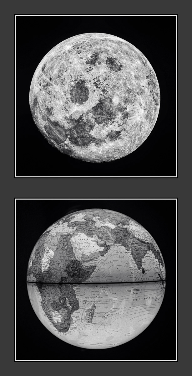 Due sfere: una piena, vitale, traboccante di sogni e speranze; l’altra vuota, sterile, priva di vita e di futuro. Terra e Luna non sono solo corpi celesti, ma simboli universali di tutto e nulla, vita e assenza, speranza e vuoto.