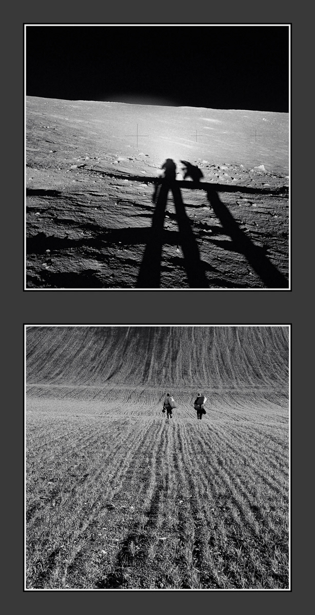 Apollo non è una celebrazione dell’impresa spaziale, ma una meditazione sulla condizione umana. Ogni dittico è un varco metafisico: ci mostra che le conquiste tecnologiche non cancellano le fragilità, ma le ripropongono su scala cosmica. L’uomo pianta bandiere sulla Luna come le pianta sulla sabbia; costruisce culle e sonde, impronte e ombre, monumenti e rifiuti. Tutto si riflette, tutto ritorna. Il viaggio fotografico, con la sua natura indicale, diventa qui strumento filosofico. Non documenta, ma interroga. Ogni immagine è segno, e ogni segno rinvia a un enigma: chi siamo, dove stiamo andando, quale segno resterà di noi quando le onde del tempo avranno cancellato tutto. Il confronto tra Terra e Luna diventa il paradigma di un dualismo eterno: pienezza e vuoto, vita e morte, origine e fine, fragilità e conquista. Nell’oscillazione tra questi poli sta la vera essenza dell’umanità: non un “sapiens” compiuto, ma un viandante cosmico che cerca sé stesso negli specchi che costruisce. Così, Apollo non parla solo della Luna. Parla di noi: creature che, nell’ansia di elevarsi, continuano a ritrovare la propria ombra. Creature che sognano l’infinito, ma portano con sé il peso del finito. Creature che, pur sapendo di non poter sfuggire al nulla, continuano a riempirlo di segni, di bandiere, di immagini, di domande. In fondo, è questo il miracolo dell’uomo: abitare il tutto, sapendo di essere destinati al nulla.