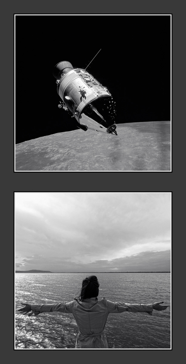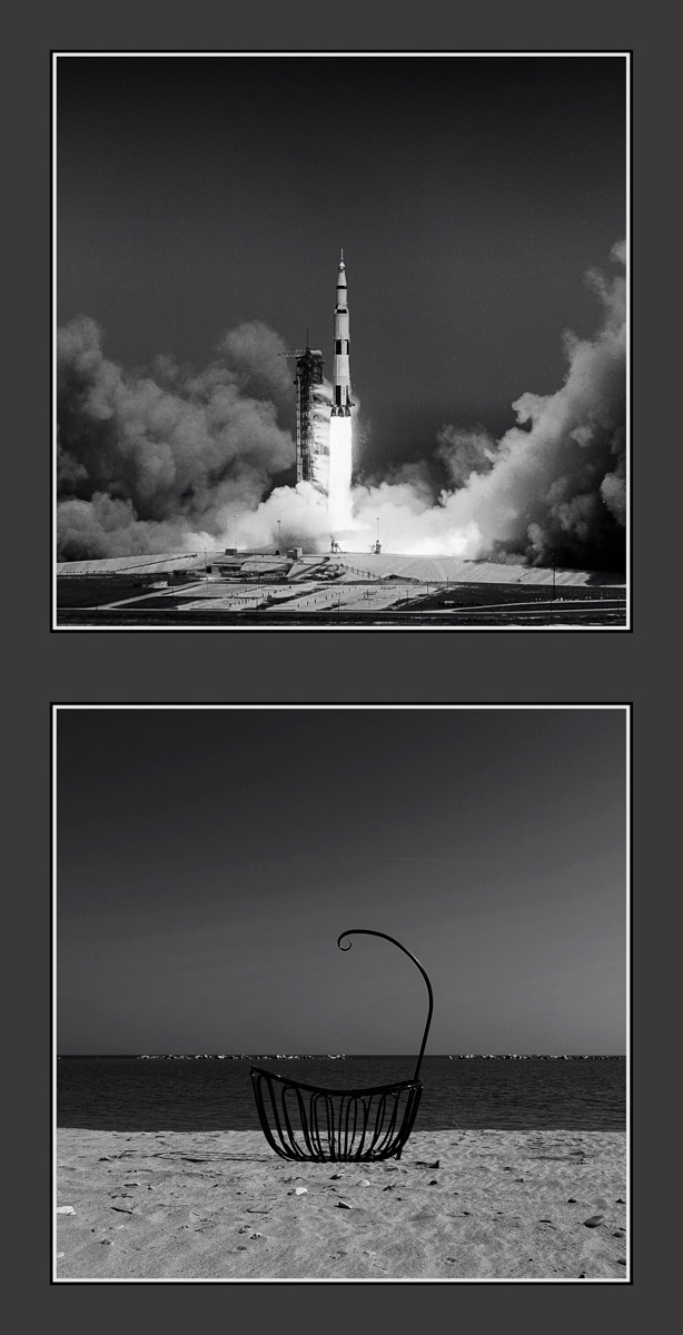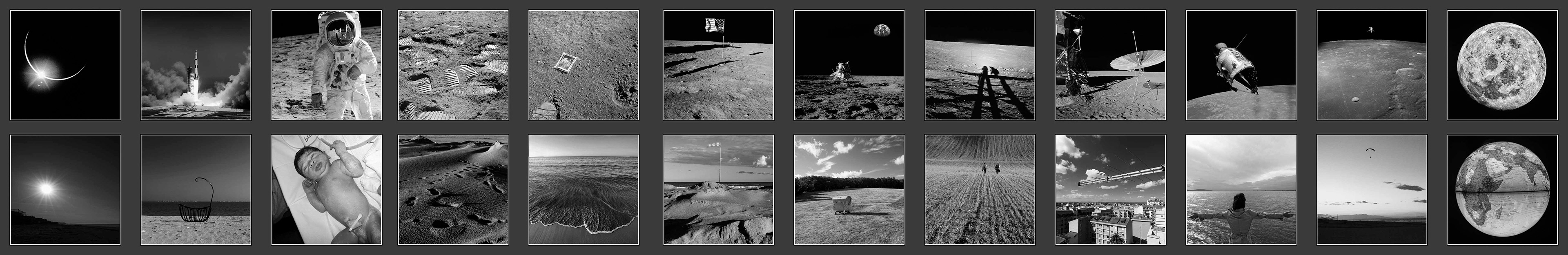 Apollo is not a celebration of the space endeavor, but a meditation on the human condition. Each diptych is a metaphysical threshold: it shows us that technological conquests do not erase fragilities, but rather project them on a cosmic scale. Man plants flags on the Moon as he does on the sand; he builds cradles and probes, footprints and shadows, monuments and waste. Everything reflects, everything returns. The photographic journey, with its indexical nature, here becomes a philosophical instrument. It does not document, it questions. Each image is a sign, and each sign points to an enigma: who we are, where we are going, what trace will remain of us when the waves of time have erased everything. The dialogue between Earth and Moon becomes the paradigm of an eternal dualism: fullness and void, life and death, origin and end, fragility and conquest. In the oscillation between these poles lies the true essence of humanity: not a completed “sapiens,” but a cosmic wanderer seeking himself in the mirrors he builds. Thus, Apollo does not speak only of the Moon. It speaks of us: creatures who, in the anxiety of rising higher, continually rediscover their own shadow. Creatures who dream of the infinite, yet carry the weight of the finite. Creatures who, though knowing they cannot escape nothingness, continue to fill it with signs, with flags, with images, with questions. In the end, this is man’s true miracle: to inhabit everything, while knowing he is destined for nothingness.